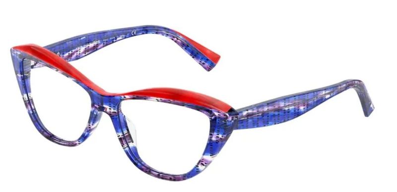 Oculos de grau Alain Mikli Cataline A03117 tem armacao confeccionada em acetato azul, vermelho e violeta