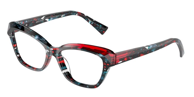 Oculos de grau Alain Mikli A03147 Sephine tem armacao confeccionada em acetato mosaisco vermelho e azul