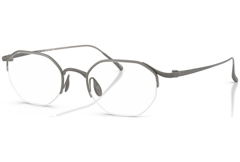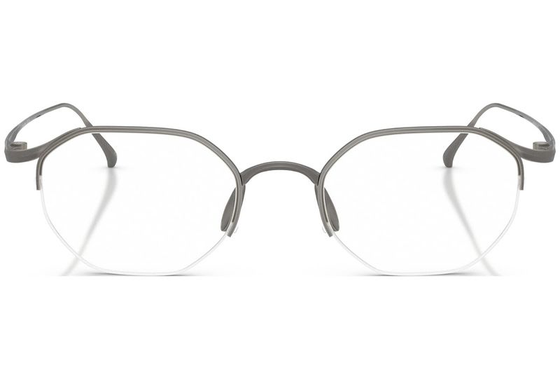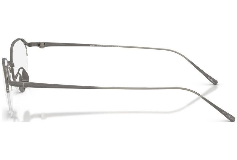 Este modelo leve em titânio apresenta um design de meia armacao que oferece uma silhueta contemporânea sofisticada As gravacoes em Kanji na dobradica sao uma homenagem sutil a busca pela perfeicao, que une o artesanato japones a visao atemporal da Armani