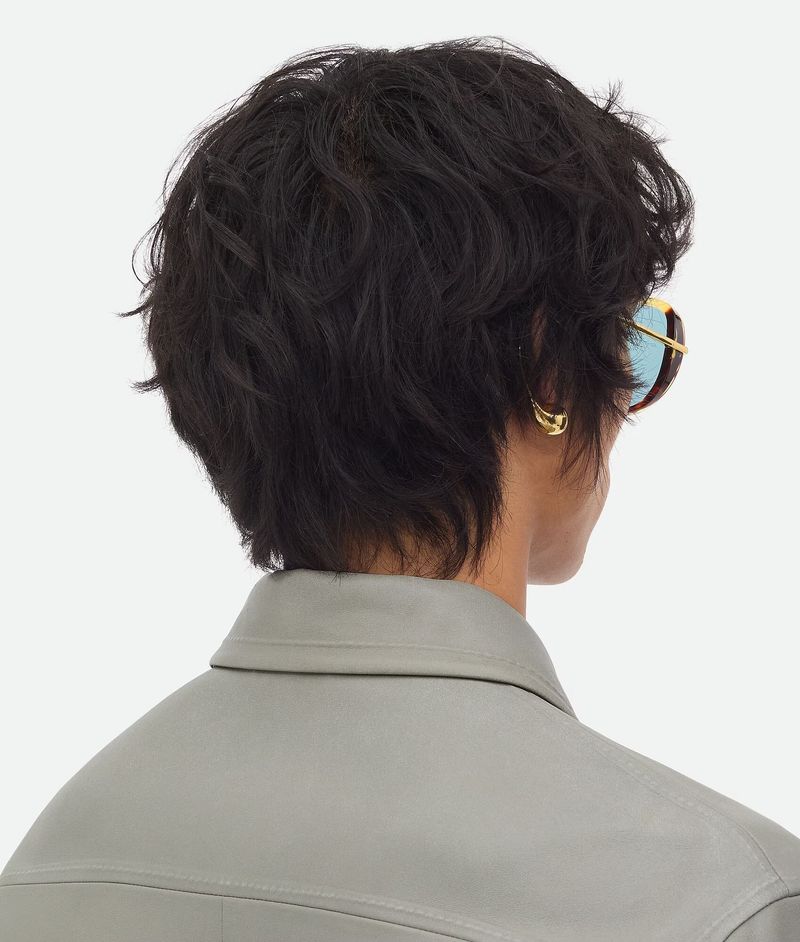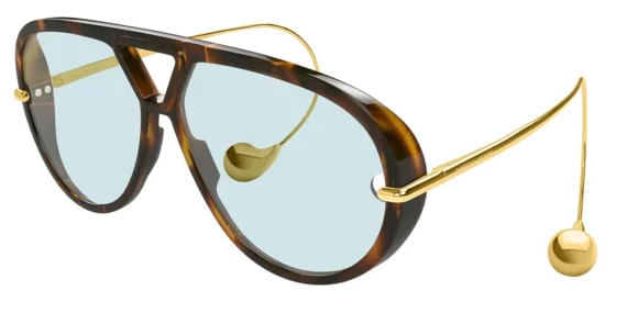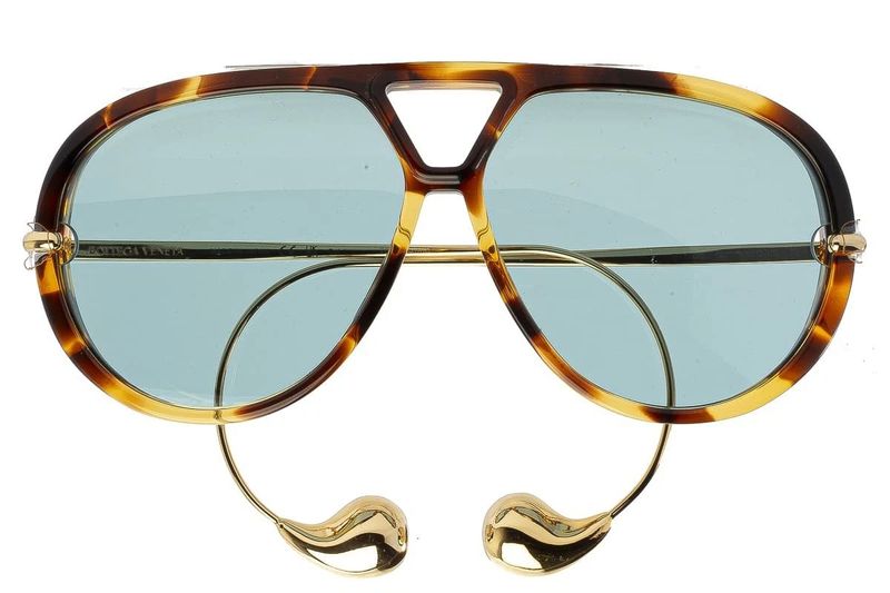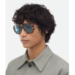 Oculos de sol estilo aviador Bottega Veneta BV1273S em acetato reciclado com hastes em formato de gota, uma caracteristica marcante da marca Fabricado no Japao