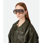 Oculos de sol estilo aviador Bottega Veneta BV1273S em acetato reciclado com hastes em formato de gota, uma caracteristica marcante da marca Fabricado no Japao