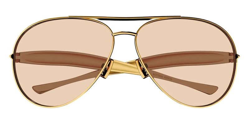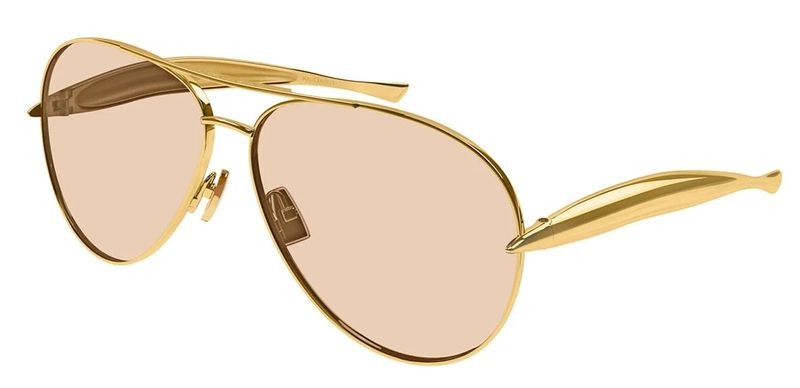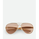 Bottega Veneta BV1305S Oculos de sol aviador em metal com hastes esculturais em formato de sardinha