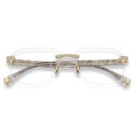Como um testemunho da filosofia de luxo discreto da marca, estes oculos Brunello Cucinelli personificam a sofisticacao descomplicada e o requinte artesanal Fabricados no Japao, as lentes de vidro Barberini Premium sem aro sao combinadas com detalhes gravados em titânio e hastes de acetato, criando um visual de inquestionavel elegância As linhas gravadas na ponte, nas extremidades e nas pontas das hastes combinam em perfeita harmonia, com outro padrao no fio interno das hastes