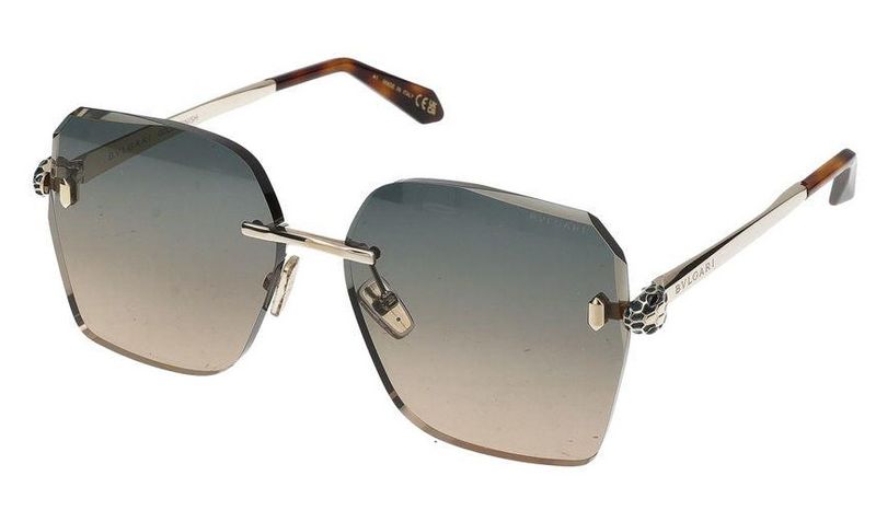 Oculos de sol Serpenti Forever com armacao quadrada sem aro Inspiradas pelo iconico fecho das bolsas Serpenti, as hastes metalicas apresentam uma preciosa cabeca de serpente adornada com esmaltes aplicados a mao, tornando este modelo irresistivelmente cativante