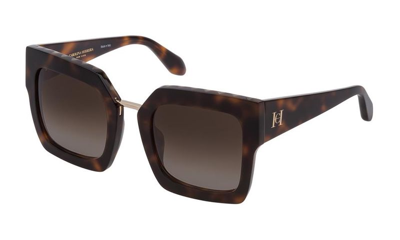 Oculos de sol Carolina Herrera New York SHN606M tem armacao em acetato quadrado tartaruga com acabamento em metal As lentes degrade marrom garantem protecao contra os raios UV