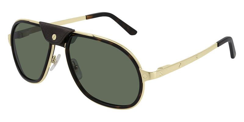 Oculos de sol Santos de Cartier CT0241S em metal com acabamento liso e escovado, formato piloto e lentes verdes polarizadas