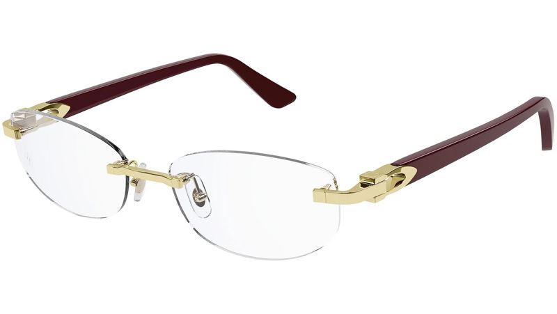 Cartier CT0318O com moldura de acabamento dourado suave e haste bordo