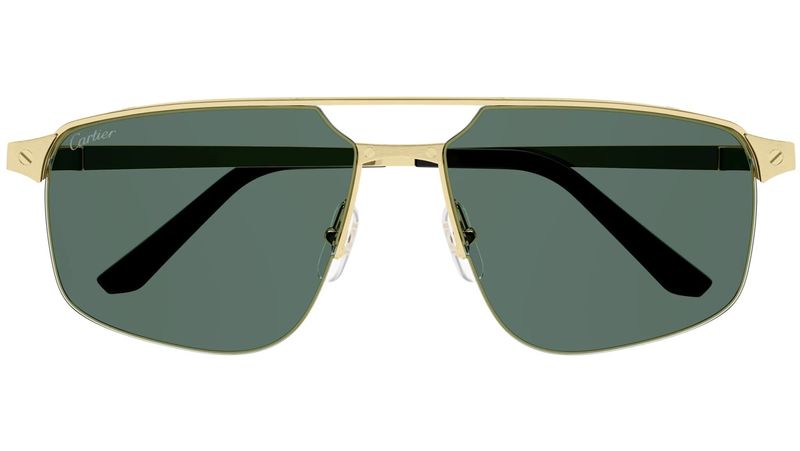 Oculos de sol Santos de Cartier, meio aro metalico, acabamento dourado liso e escovado, lentes verdes