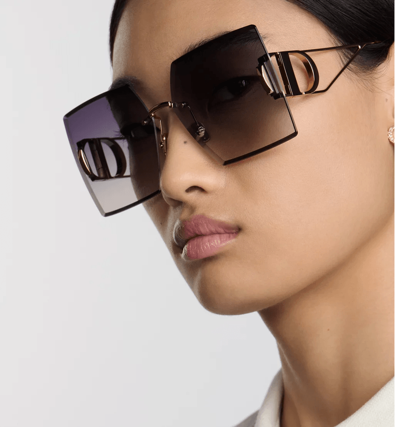Estes oculos escuros 30Montaigne S7U valorizam a ja iconica linha da Maison O modelo com espirito de alta-costura e caracterizado por seu design quadrado refinado sem aro As hastes de metal com acabamento dourado rose sao adornadas com uma inscricao CD funcional, inspirada no fecho emblematico da bolsa homonima Finalizado com lentes degrade do roxo ao rosa, o par e tendencia e adiciona um toque moderno a um modelo Dior caracteristico