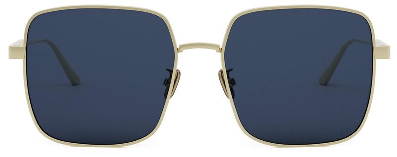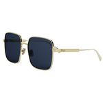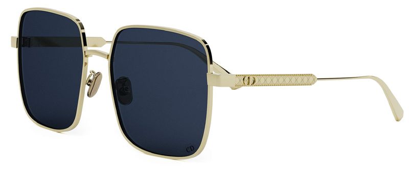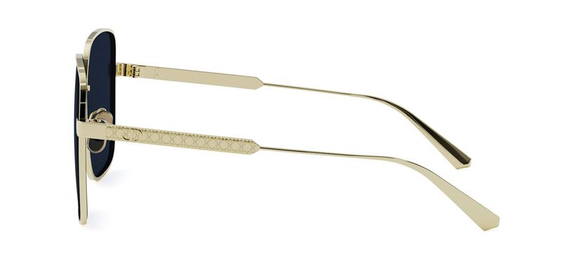 Estes oculos escuros DiorCannage S1U sao um modelo elegante adornado com detalhes emblematicos A armacao com formato quadrado de metal com acabamento dourado destaca-se por uma delicada gravacao nas hastes exibindo o motivo Cannage e a inscricao CD Finalizados com lentes azuis, os oculos agregam um toque moderno e refinado a qualquer look