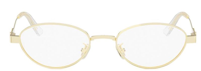 Eegantes oculos adornados com detalhes emblematicos A armacao com formato oval de metal destaca-se por uma delicada gravacao nas hastes exibindo o motivo Cannage e a inscricao CD