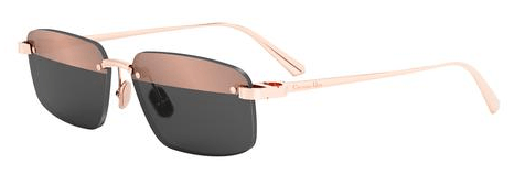 Os oculos escuros CDior S4U tem uma nova versao urbana da inscricao CD da Maison A estetica moderna do formato retangular baixo dos oculos sem armacao e complementada por uma dobradica CD de metal com acabamento dourado rose inspirada na colecao de joalheria 30 Montaigne Finalizado com lentes em duas cores, nude-escuro com efeito espelhado e cinza, o modelo glamouroso valoriza qualquer look com um toque elegante