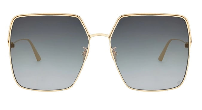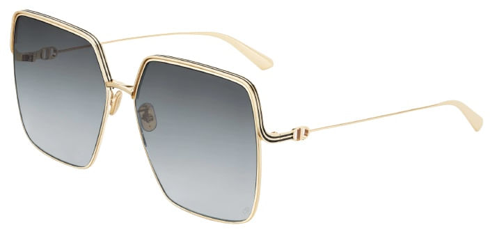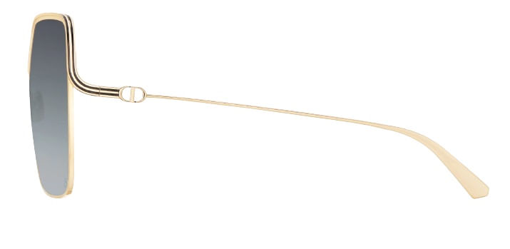Estes oculos escuros EverDior S1U quadrados grandes sao um modelo elegante e refinado O motivo gravado e estriado na armacao e valorizado com um tratamento laqueado preto que destaca ainda mais a tonalidade do metal e uma delicada inscricao CD vazada nas hastes acrescenta um toque de sofisticacao Fina, a armacao de metal com acabamento dourado realca as lentes cinza degrade