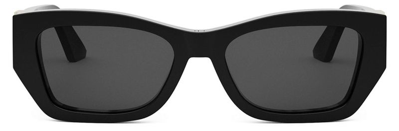 Os oculos de sol MissDior S1I expandem a linha homonima com um formato retangular elegantemente moderno A armacao de acetato preto e acentuada por hastes largas exibindo a assinatura Miss Dior em metal com acabamento dourado Com lentes cinza, os oculos de sol atraentes completam qualquer visual sem esforco