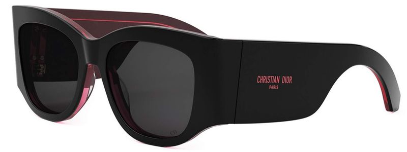 Os oculos de sol DiorNuit S1I apresentam um design exclusivo que incorpora a estetica moderna da Maison Eles se destacam com sua armacao quadrada em camadas de acetato preto e vermelho transparente, bem como suas hastes grandes embelezadas com uma assinatura vermelha Christian Dior Paris Completados por lentes cinza, o novo e ousado essencial dara um toque contemporâneo a qualquer visual