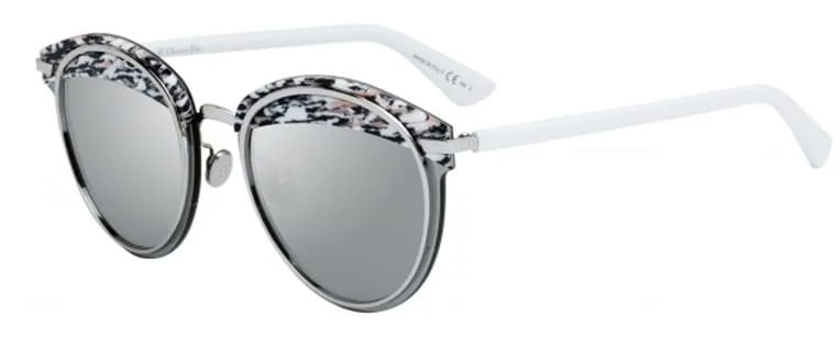 Oculos de sol Dior Offset1 tem armacao confeccionada com fronte em metal prata e acetato mescla cinza e branco As lentes pratas espelhadas garantem protecao contra os raios UV