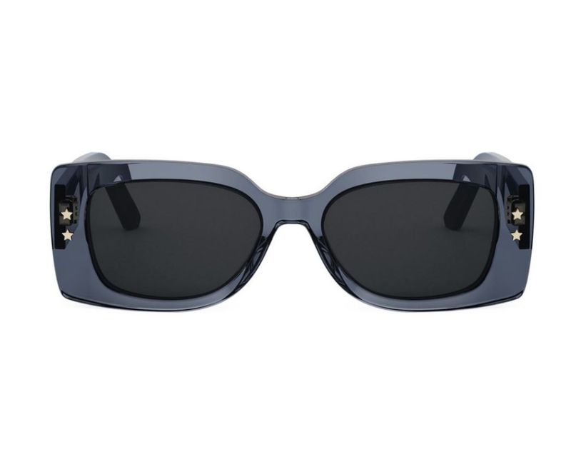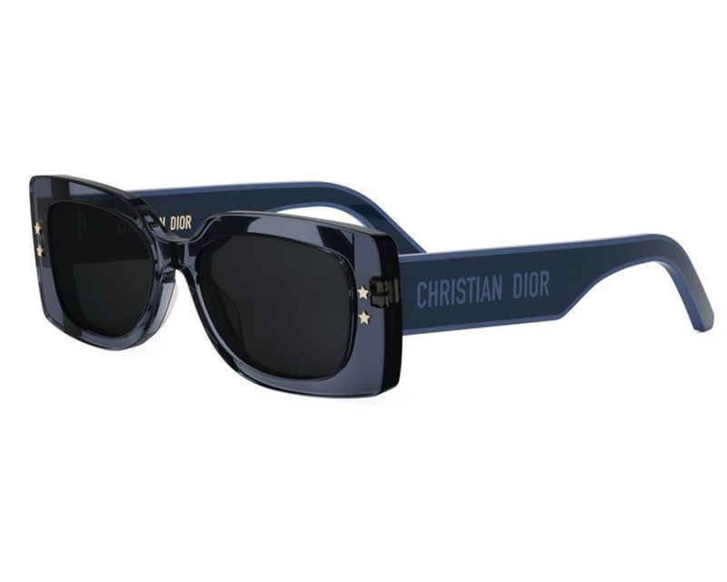 Os oculos escuros DiorPacific S1U tem um formato retangular moderno e ousado A armacao de acetato azul transparente e adornada com detalhes de estrela com acabamento dourado na frente, enquanto as hastes de acetato tem um efeito de dupla camada azul-acinzentado e azul-denim que exibe a inscricao Christian Dior Finalizado com lentes azuis, este novo modelo essencial agrega um toque exclusivo a qualquer look