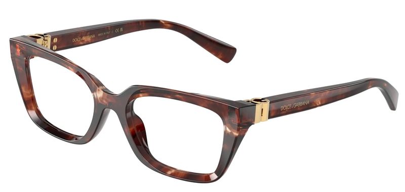 Oculos de grau retangulares estreitos, confeccionados em acetato facetado, com dobradica DG visivel de cima e o logotipo DolceGabbana alongado na parte frontal das hastes