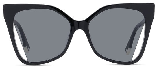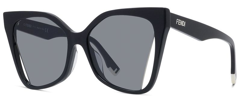 Oculos de sol Square Fendi Way confeccionados em acetato preto As lentes cinza de corte diagonal sao finalizadas com uma borda branca