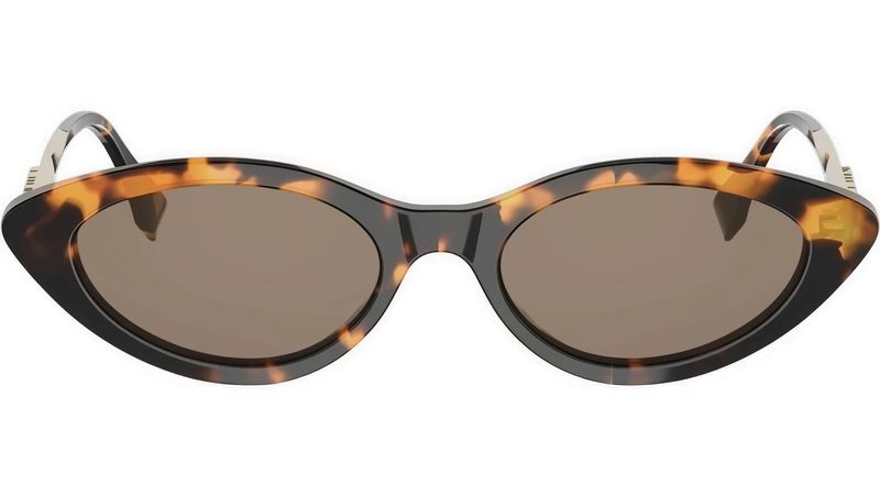 Oculos de sol Fendigraphy com armacao gatinho alongada em acetato Hastes largas em metal dourado, decoradas com a inscricao tridimensional Fendi Roma e ponteiras em acetato combinando com a armacao