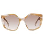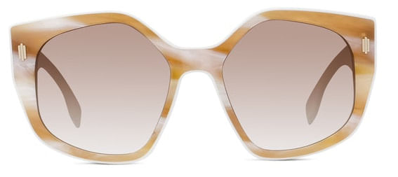 Oculos de sol Square Fendi Bold em acetato bege com frontal chifre Acabamento com lentes marrom degrade e letras Fendi em metal dourado nas hastes