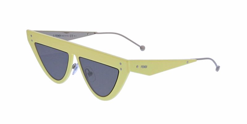 Oculos de sol Fendi Defender FF0371S tem armacao gatinho amarela e lentes espelhadas prateadas