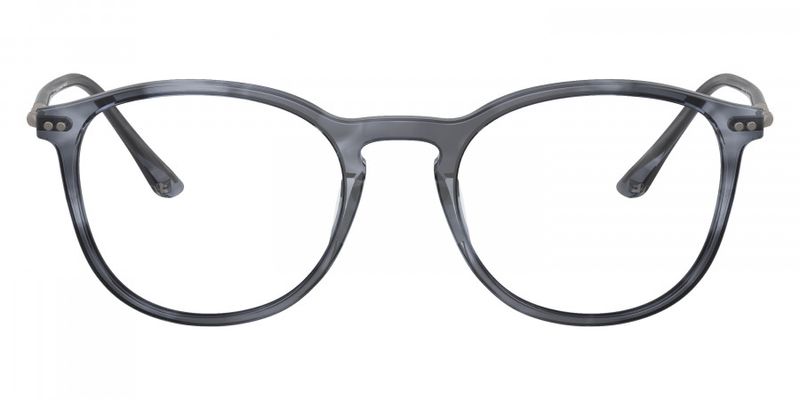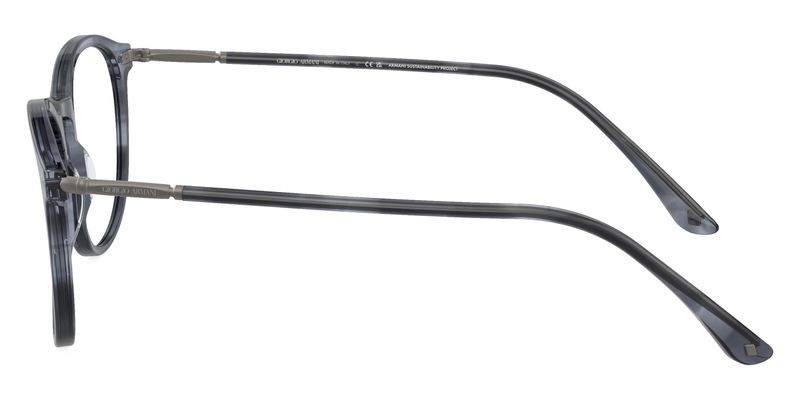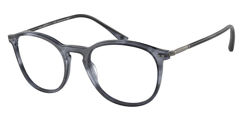 Oculos de grau Giorgio Armani AR7125 tem armacao em acetato azul listrado e detalhe nas hastes em metal