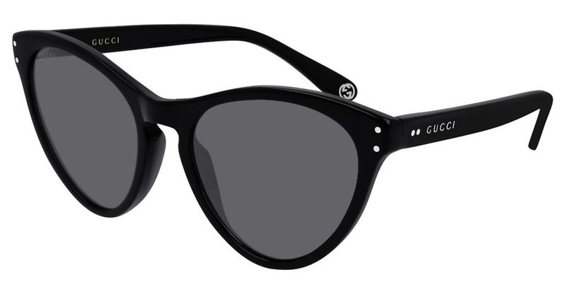 Oculos de sol Gucci GG0569 tem armacao gatinho em acetato preto As lentes cinzas garantem protecao contra os raios UV