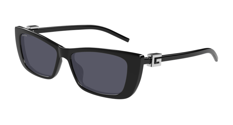 A colecao de oculos Pre-Fall 2024 combina com sucesso as silhuetas cobicadas de decadas passadas com uma sensacao de logotipo contemporâneo Aqui, uma armacao de injecao preta brilhante combina com um motivo Square G