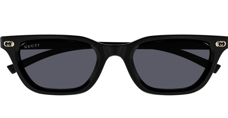 A colecao de oculos Pre-Fall 2025 combina com sucesso as silhuetas cobicadas de decadas passadas com um toque contemporâneo de logotipo Aqui, esta armacao de acetato preto combina com um G entrelacado e o logotipo Gucci gravado