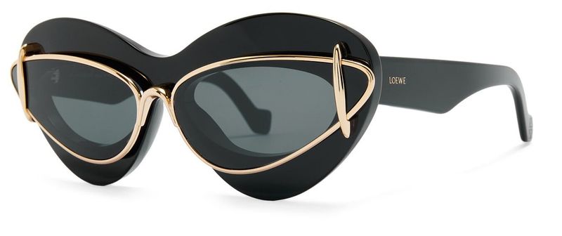 Oculos de sol estilo cateye em acetato com armacao dupla estilo cateye em metal e logotipo LOEWE na haste