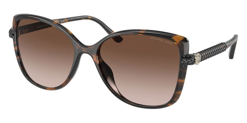 Uma haste com textura de tecido oferece um toque rico ao lado do berloque circular da MK Moderno e feminino, este modelo de sol borboleta esta disponivel em uma paleta de cores delicada que inclui duas opcoes de tons leitosos, alem de lentes degrade