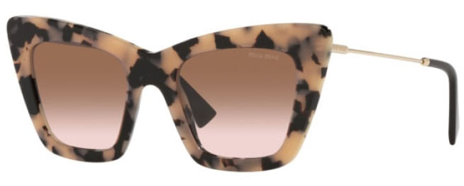 Oculos de sol Miu Miu MU01WS tem armacao gatinho em acetato havana e lentes degrade