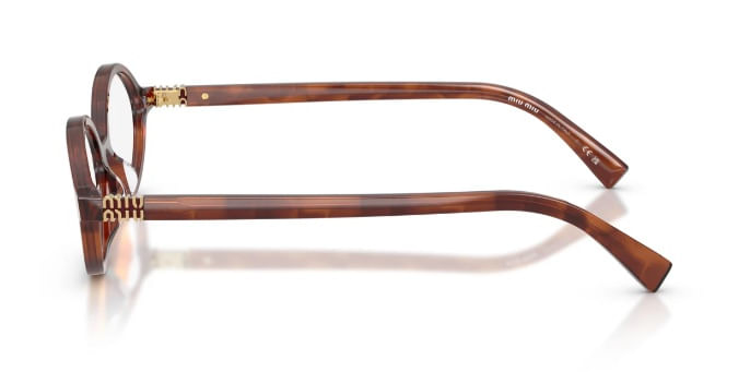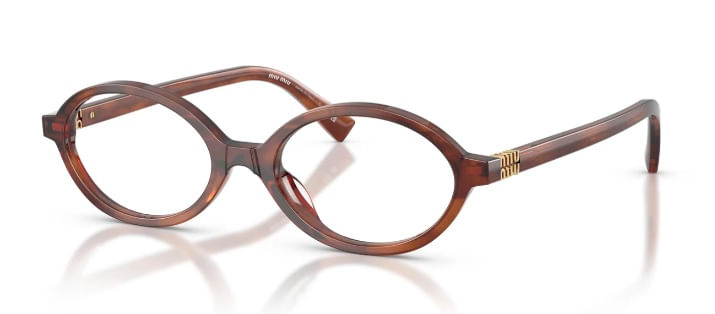 Oculos em acetato com formato oval sofisticado A armacao em acetato possui aros finos e lentes ultraplanas que destacam a extrema leveza O logotipo vertical da Miu Miu embeleza as hastes com um toque refinado