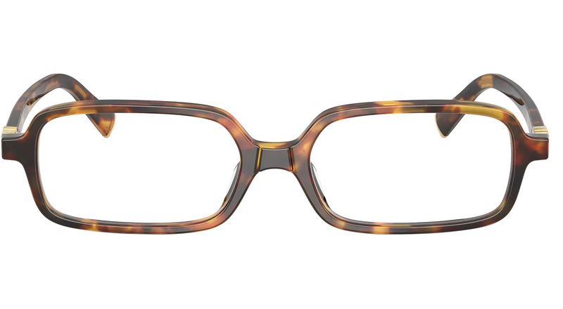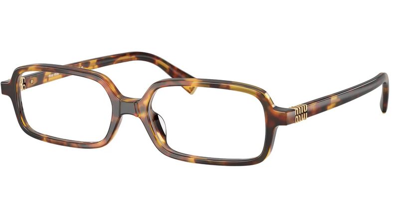 Oculos de grau em acetato com formato retangular sofisticado A armacao tem aros finos que destacam a extrema leveza O logotipo Miu Miu vertical adiciona sua assinatura as hastes para um toque refinado