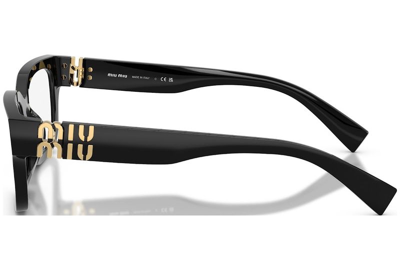 Neste modelo de oculos, a expertise da Miu Miu na criacao de estilos atemporais para o dia a dia ganha destaque Cores classicas dao vida a estas armacoes leves de acetato, acentuadas pelo logotipo metalico da Miu Miu, que tambem funciona como dobradica
