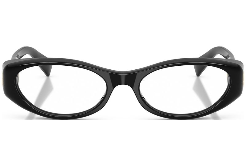 Especialista em criar looks ousados ??para o dia a dia, a Miu Miu apresenta este modelo oval com volume excepcional Uma nova tecnica sobrepoe duas lâminas de acetato para construir um detalhe diferenciado Para completar o visual, o iconico logo vertical da Miu Miu em metal acentua esse detalhe Definida por bordas externas curvadas para cima, esta armacao oval ganha um toque gatinho para um visual ainda mais marcante