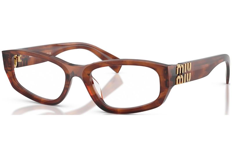 A Miu Miu nao segue regras, ela as quebra Este modelo de oculos captura essa ambicao, elevando um formato basico com a ousadia de um olho de gato Adornadas com o logo vertical da marca, estas armacoes de acetato foram feitas para atrair olhares todos os dias