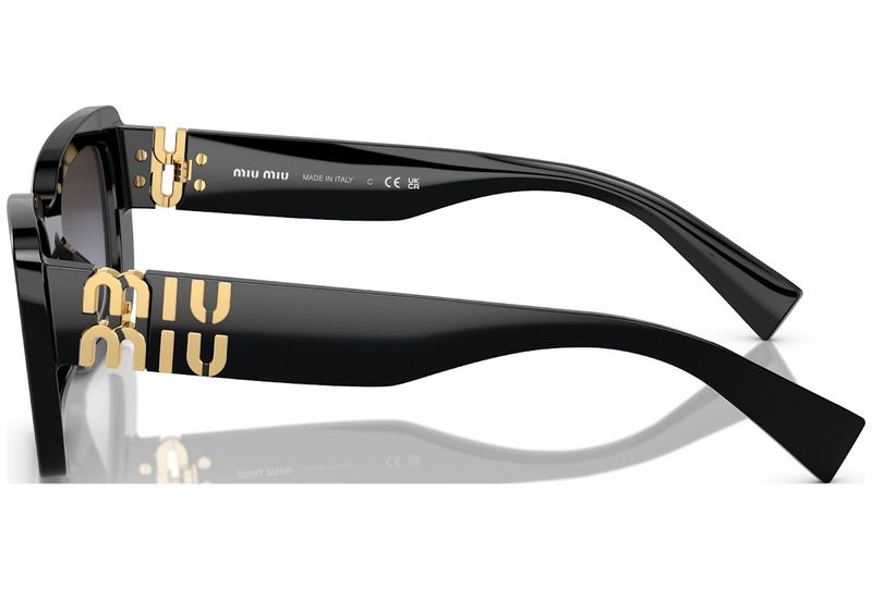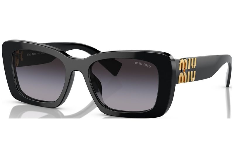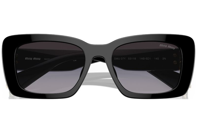 Um modelo de sol retangular em acetato que deixa sua marca instantaneamente gracas aos seus volumes arrojados O logo vertical Miu Miu e tanto um detalhe elegante quanto uma articulacao funcional