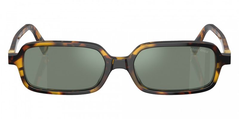 Oculos de sol em acetato com formato retangular sofisticado A armacao tem aros finos e lentes ultraplanas que destacam a extrema leveza O logotipo Miu Miu vertical adiciona sua assinatura as hastes para um toque refinado