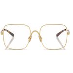 Proporcoes inesperadas e detalhes sutis conferem a essas armacoes quadradas o charme excentrico pelo qual a Miu Miu e conhecida O formato quadrado tem volumes grandes, porem finos, combinados com hastes elegantes e um logotipo Miu Miu na dobradica