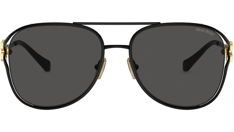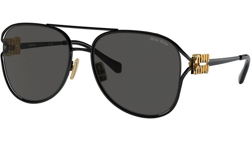 Oculos de sol de metal com charme glamoroso A silhueta piloto superdimensionada e enfatizada pelos finos aros de metal que se separam das grandes lentes planas antes de se encontrarem novamente com o novo logotipo vertical da Miu Miu integrado na dobradica das hastes retas
