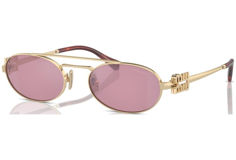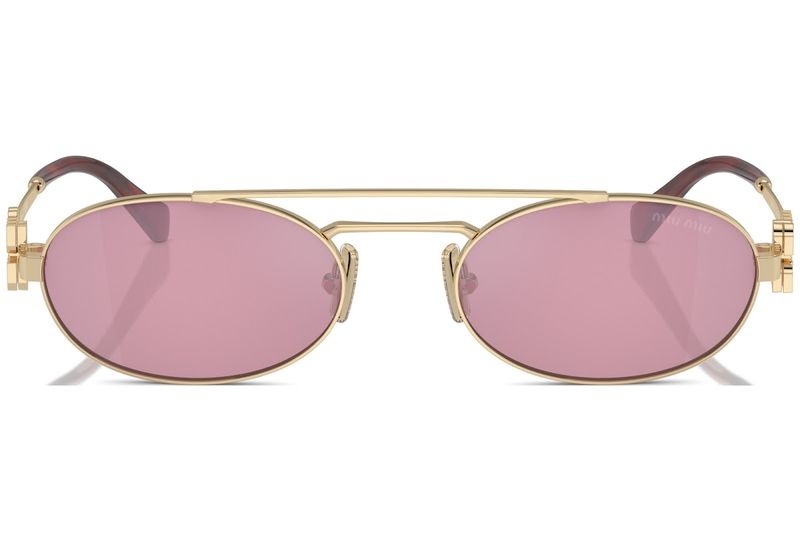 Oculos de sol de metal com charme retro A frente oval estreita e intrepida tem uma ponte dupla sofisticada e e combinada com hastes finas embelezadas com o logotipo vertical da Miu Miu