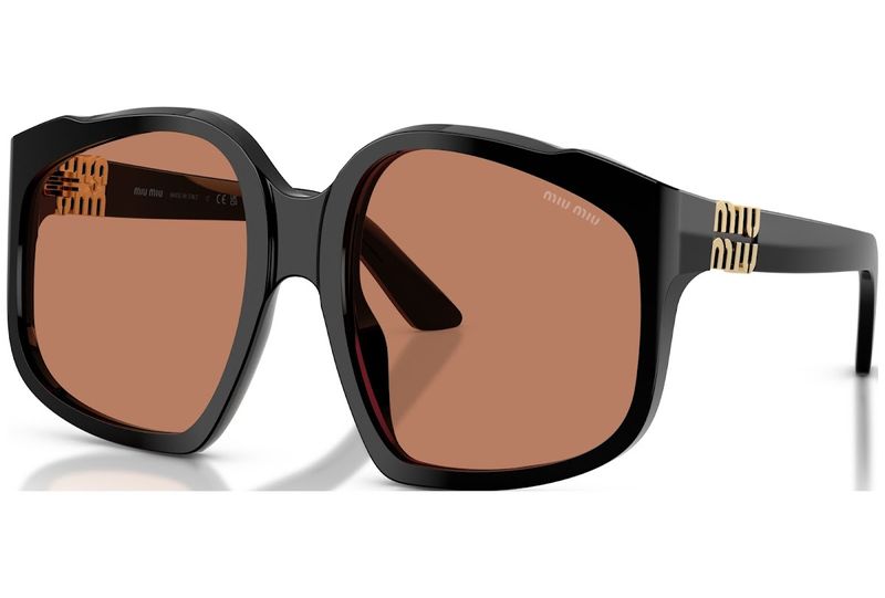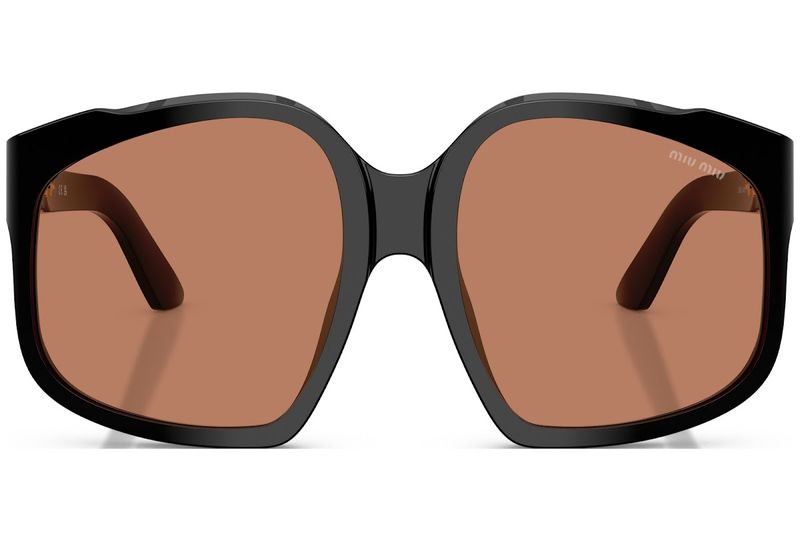 Inspiracoes retro e perfis ousados se misturam no design oversized dos oculos de sol Miu Ombre Primavera erao 2025 O modelo apresenta uma armacao grande e quadrada, disponivel em uma paleta de cores vibrantes As hastes sao assinadas pelo logotipo Miu Miu em acabamento dourado