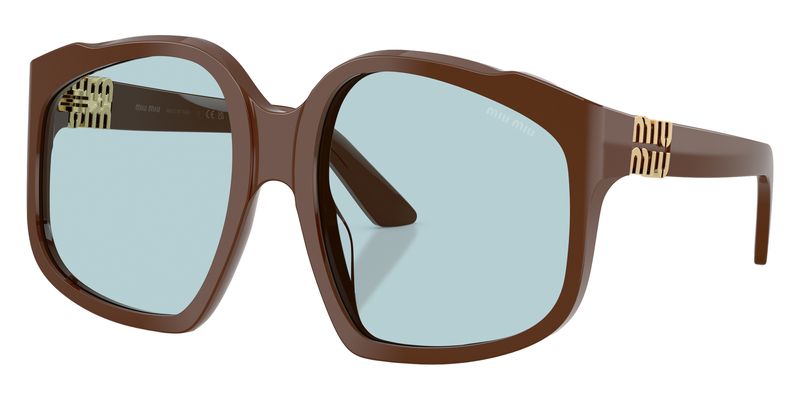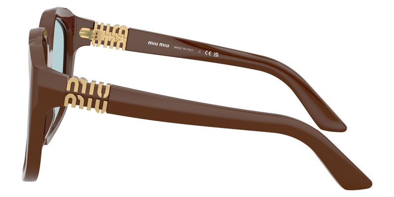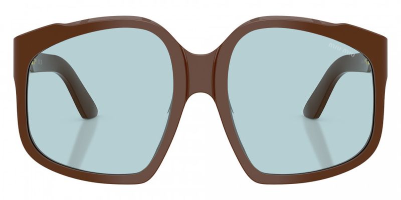 Inspiracoes retro e perfis ousados ??se misturam no design oversized dos oculos de sol Miu Ombre Primavera erao 2025 O modelo apresenta uma armacao grande e quadrada, disponivel em uma paleta de cores vibrantes As hastes sao assinadas pelo logotipo Miu Miu em acabamento dourado