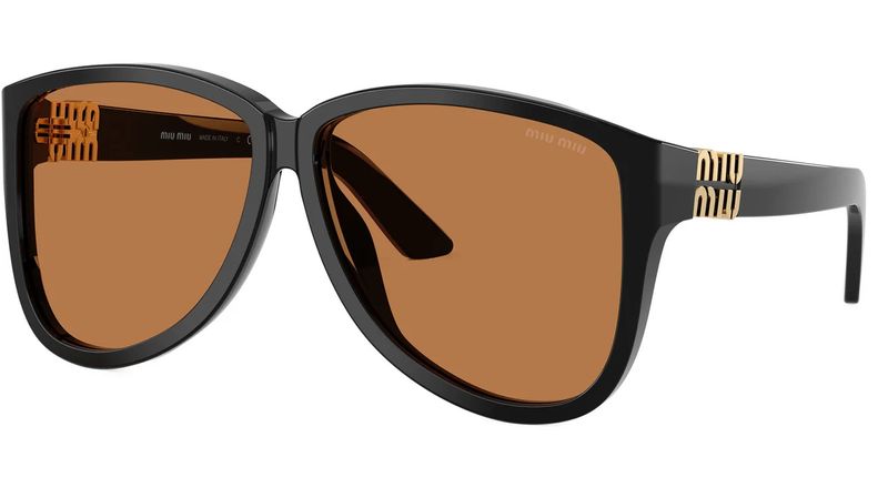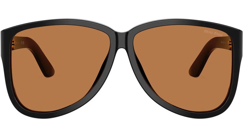 A estetica oversized da colecao Miu Ombre evolui nestes oculos de sol com estilo retro e volumes marcantes O modelo apresenta uma silhueta aviador grande realcada pela ponte slim As hastes sao decoradas com o logotipo Miu Miu