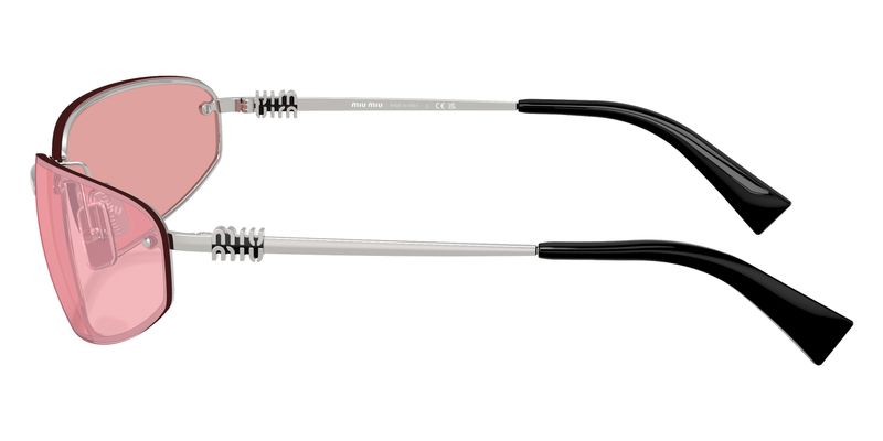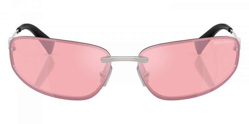 Estes oculos de sol do fashion show reinterpretam os modelos esportivos classicos com um toque de glamour A armacao em metal combina um design curvo e lentes espelhadas divertidas O logotipo vertical da Miu Miu decora as hastes ultrafinas