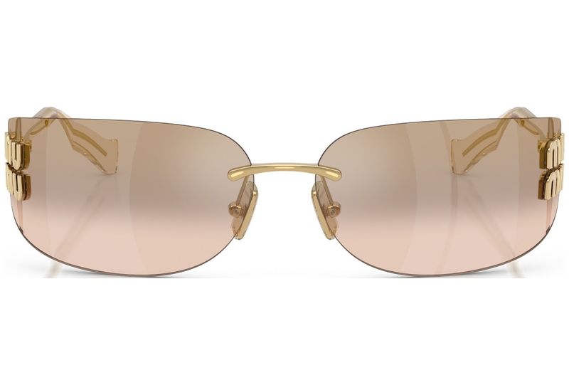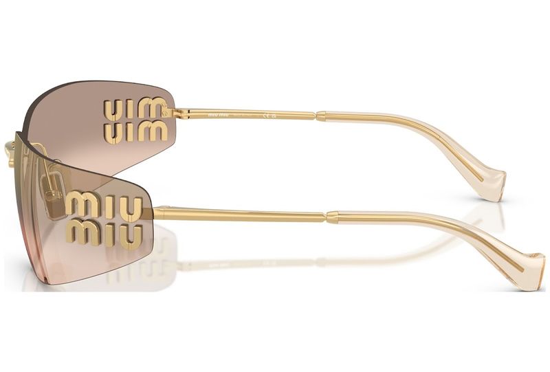 Oculos de sol em metal com design refinado e contemporâneo A armacao ultraleve apresenta lentes curvas e sem aro, valorizadas pelo imponente logotipo Miu Miu vertical