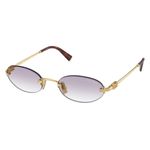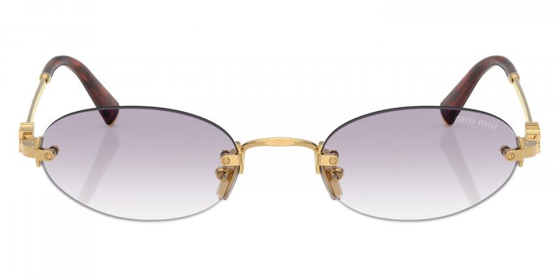 Atitudes classicas e sofisticadas se misturam nos oculos de sol Miu Miu A armacao de metal ultraleve apresenta lentes ovais livres enriquecidas com uma paleta de tons alegres O logotipo vertical da Miu Miu assina as hastes ultrafinas