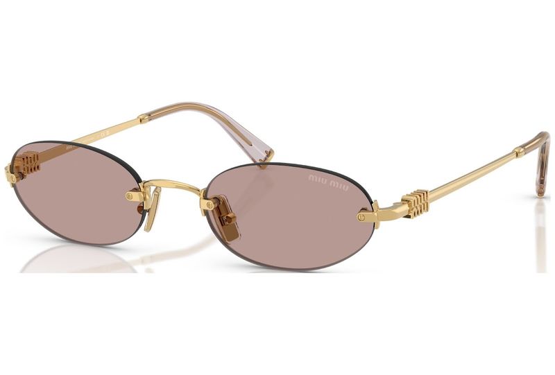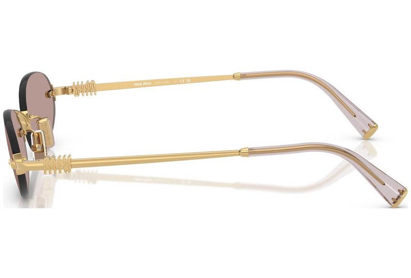 Atitudes classicas e sofisticadas se misturam nos oculos de sol Miu Miu A armacao de metal ultraleve apresenta lentes ovais livres enriquecidas com uma paleta de tons alegres O logotipo vertical da Miu Miu assina as hastes ultrafinas